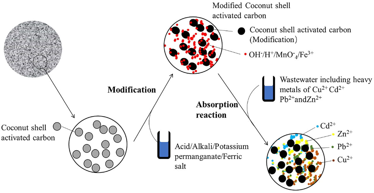Figure 4. Purification of heavy metals in wastewater using the coconut shell-based activated carbons with experimental verification[7]